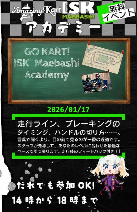 14:00~18:30 通常営業&ISK前橋ドライビングアカデミー