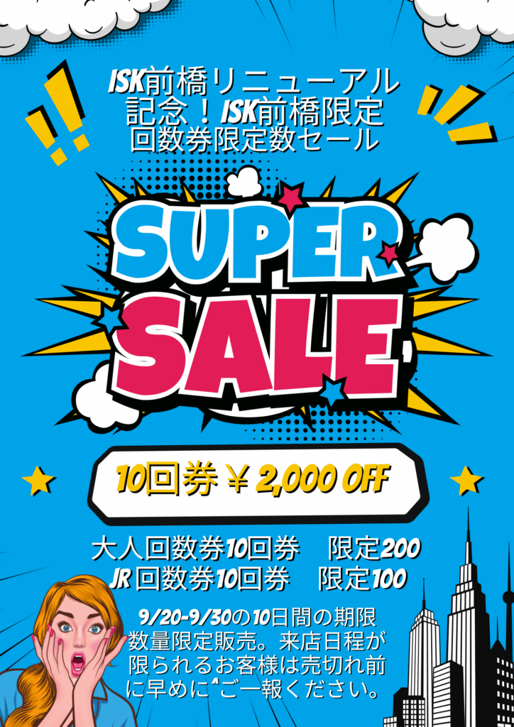 ISK前橋店は月曜日はメンテナンスの為、13時オープンとなります。